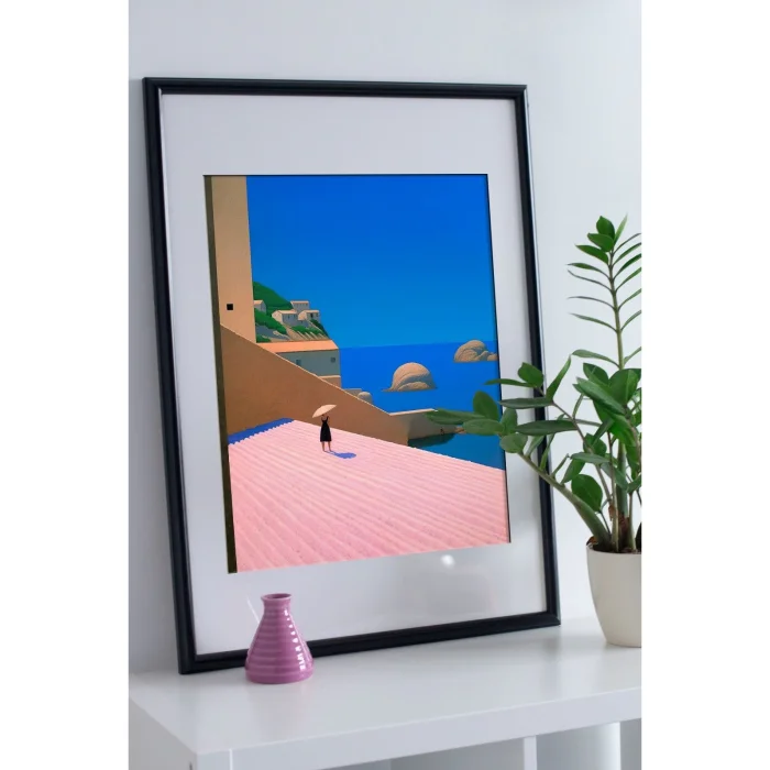 A Mediterranean seascape with pastel colors.