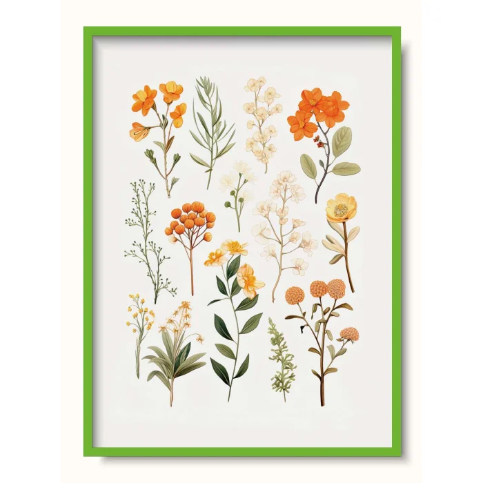 Compilation of orange-dominant plants and flowers. Ideal for yellow walls.