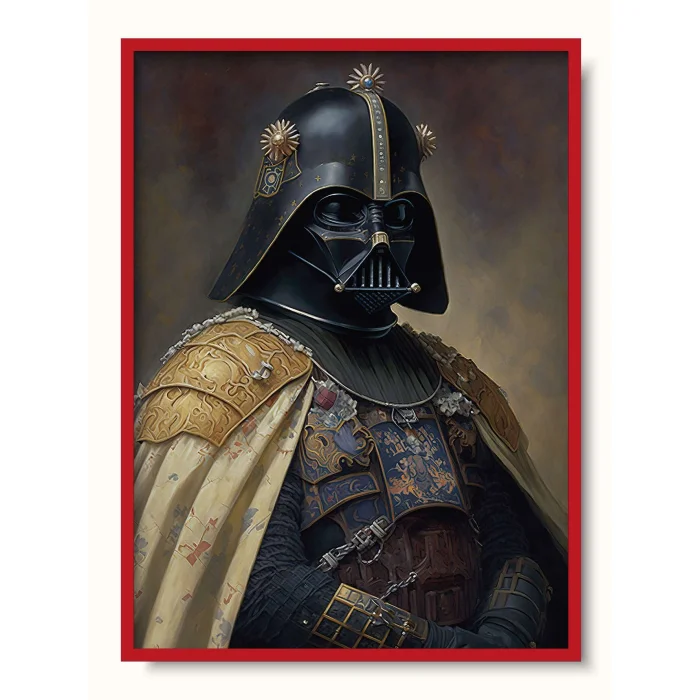Darth Vader, but dressed in a traditional armored knight's outfit and painted Leonardo Da Vinci.