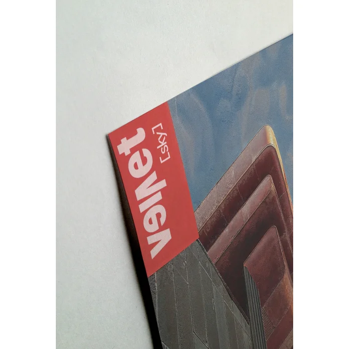This perspective, which makes a terracotta-colored structure huge, reaches a sky full of soft and diffuse clouds.