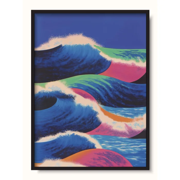 Giant, rolling ocean waves in vibrant hues.