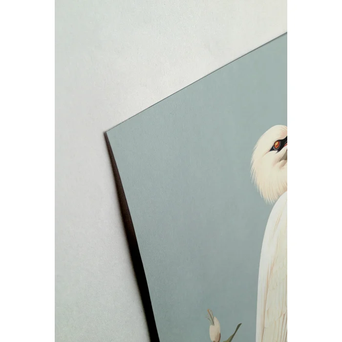 A white tropical bird watches the vast sky through orange flowers.
