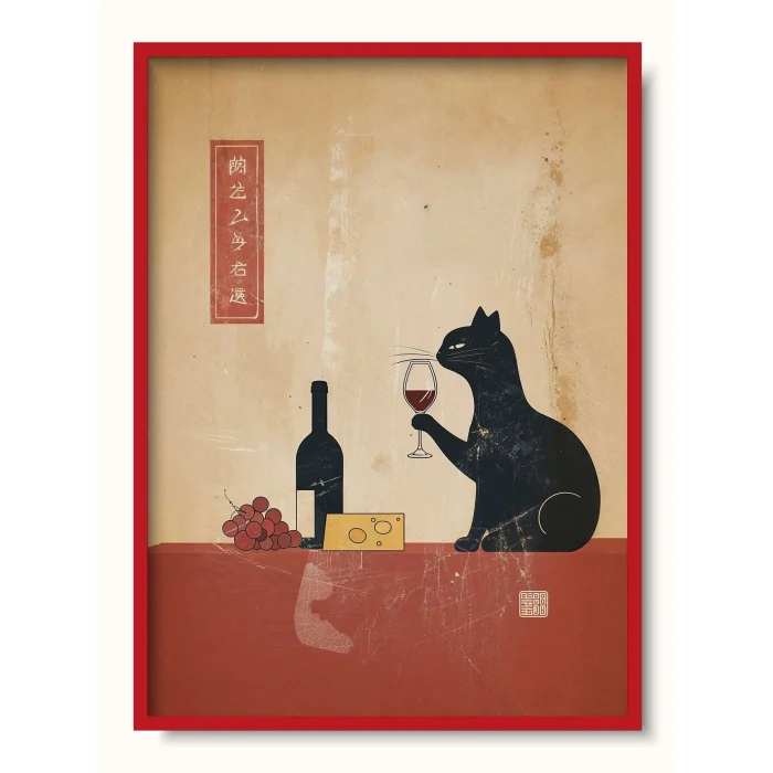 Background with far eastern vibes and a cat enjoying fermented grape juice.
