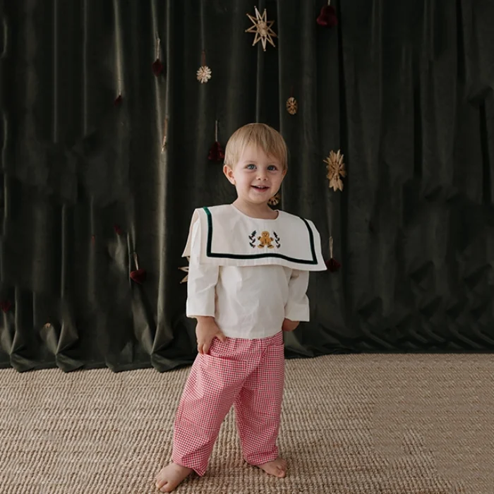 Girls and boys / unisex baby and children's trousers designed with red plaid 100% cotton fabric, handcrafted with love and care by ILO+Friends. There are options for ages 1-8. New Year's trousers, which the little ones can use both in daily use, are a stylish and comfortable piece that they can always choose easily. The cream color is sent in its own special handmade bag/package. Even the package has been designed with the comfort of children and parents in mind, with its simple and careful design and subsequent usage options. With its red plaid fabric, it is spacious, comfortable and of medium thickness, very useful for interiors in autumn and winter seasons. Spring trousers designed with natural fabrics are a very stylish and comfortable model that can be easily combined. The fun and elegant, modern and timeless ilo and friends design inspired by nature reflects the energetic spirit of children and reflects simplicity and joy with its colors. It provides easy wear with its elastic waist, prioritizes comfort, and adds elegance with its ruffle detail on the legs. It is also highly preferred to wear at school.