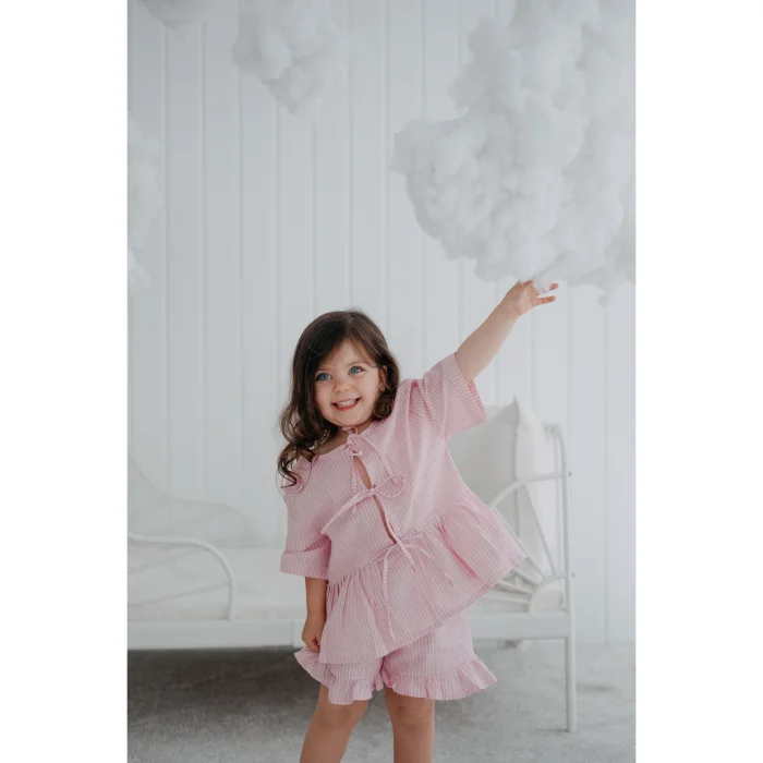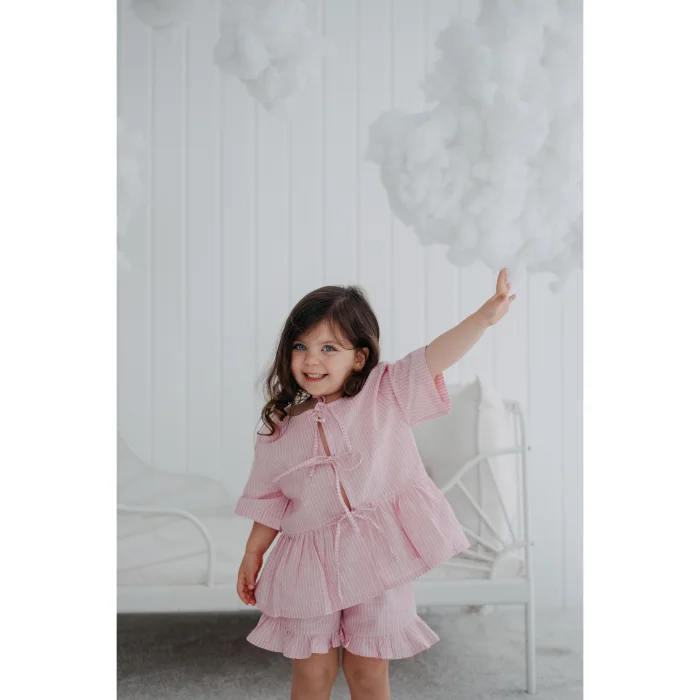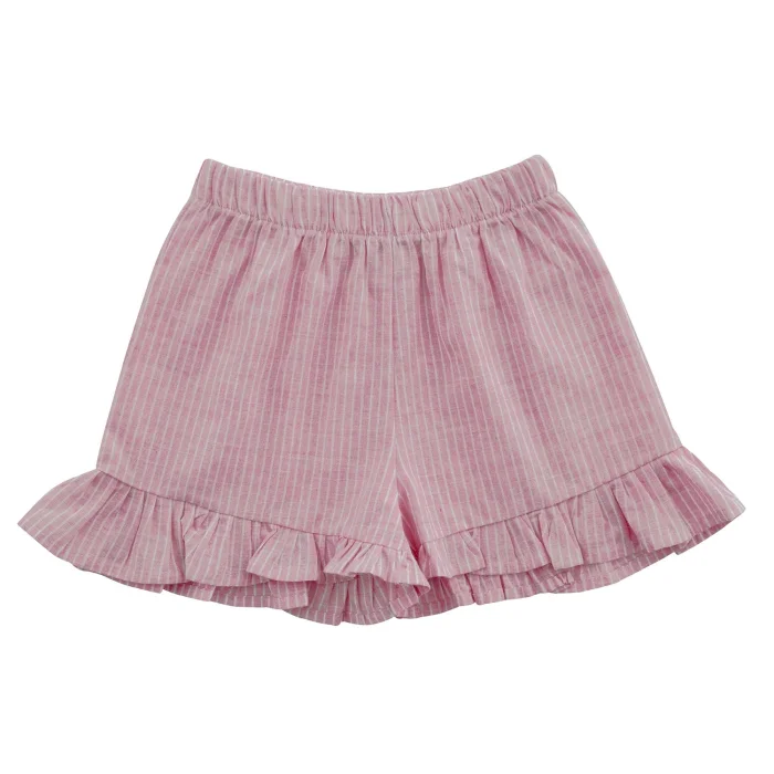 Cotton fabric. Pink and white striped fabric, girls' ruffled shorts pajama bottoms. Elasticated waist, easy and comfortable to wear. Ruffle details on the hems that expand towards the edges. It is sent in handmade cotton ilo+friends bags. Like all of our products, it is handmade.
