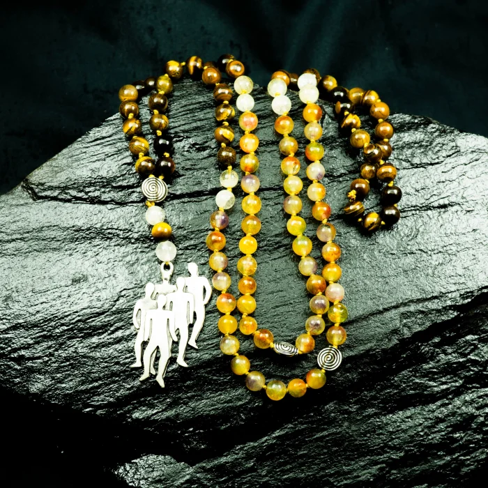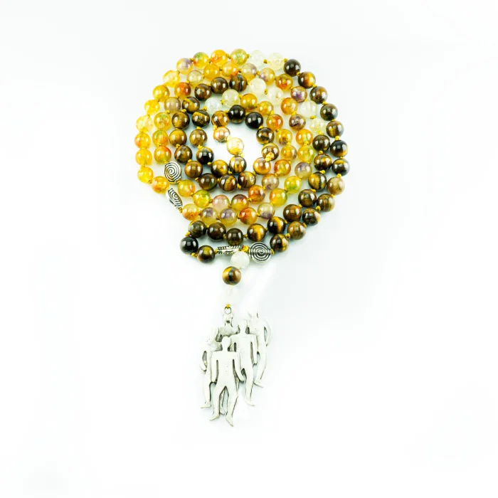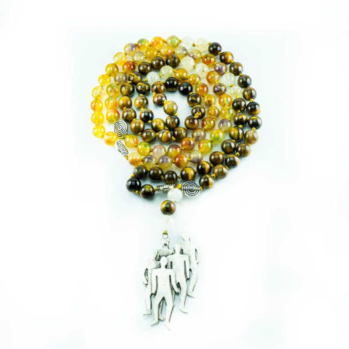 Our manipura trowel is coded with the intention of balancing our solar plexus chakra, supporting us to heal our stomach problems, healing our soul, staying away from tension and stress, and always being in abundance and abundance. Trap's Eye, Jade, and Citrine stones, as well as silver-plated human figures were used to symbolize the belief that our soul is actually one of the whole. The spiral figures used are also silver-plated.