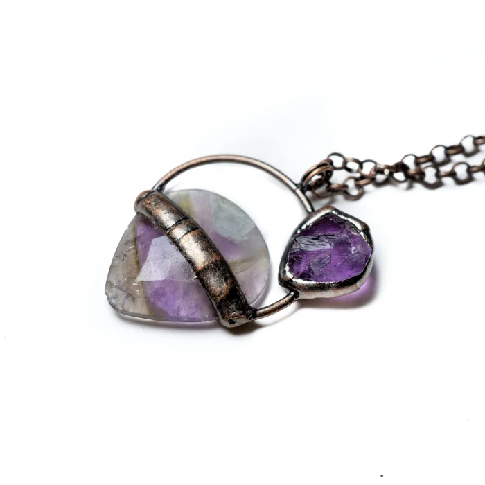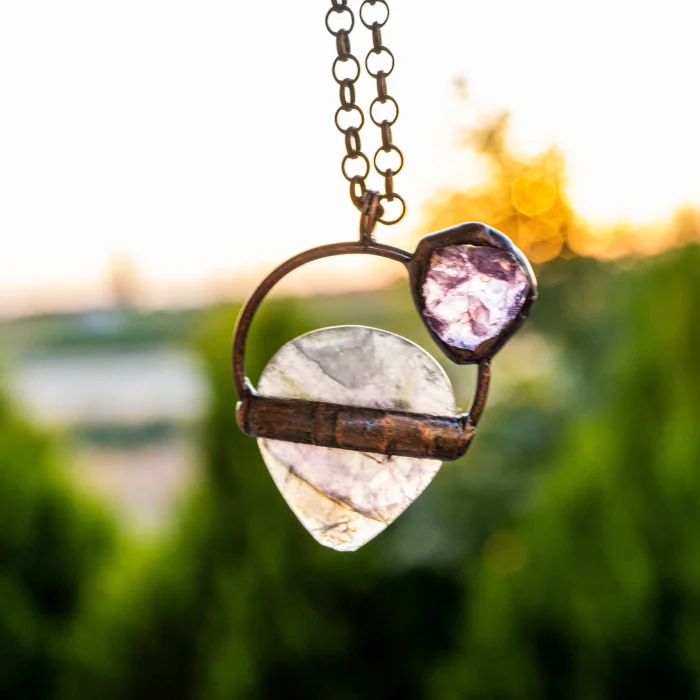 Amethyst stones are known for the high spiritual vibrations they provide. It is a powerful protective stone against psychic attacks. It is a healing stone. In some cases, it is even said to prevent intoxication and have the effect of bringing the person to his senses. It activates our decision-making mechanism. It provides emotional focus. It destroys emotions such as anger, grudge and fear. It is known as one of the most powerful stones in the spiritual sense. It ensures that our hormones are in balance. The amethyst stones, which are placed in a double form as facet-cut drop and raw, are completed with a handcrafted copper frame and chain. The difference of our intention necklace series from our other products is that we combine necklace models that are not our own production, and only the soul who will buy it will be sent to you by coding reiki with the intention it wants. The beautiful soul who will receive our necklace, we will be waiting for your intention to code it.