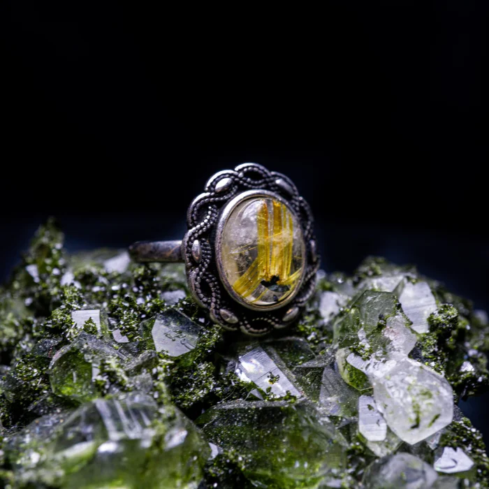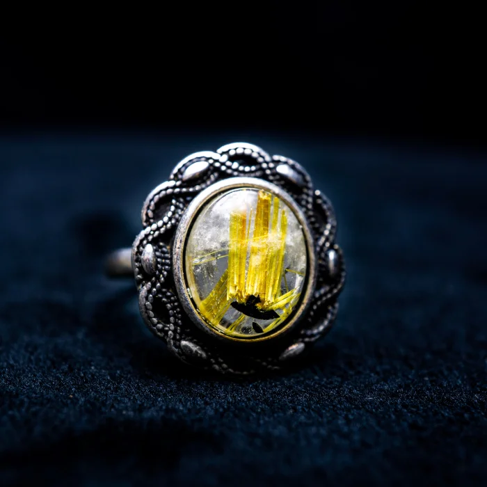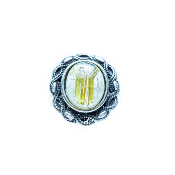 Product: Floral Pattern Golden Rutile Quartz Ring
