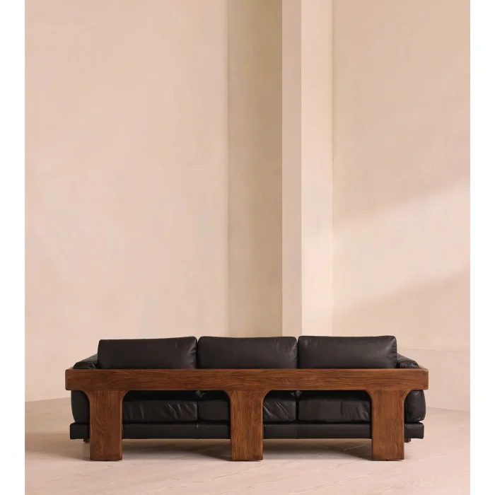 Product: Marcha Leather Upholstered Sofa With Wooden Details (3-4 Seater)