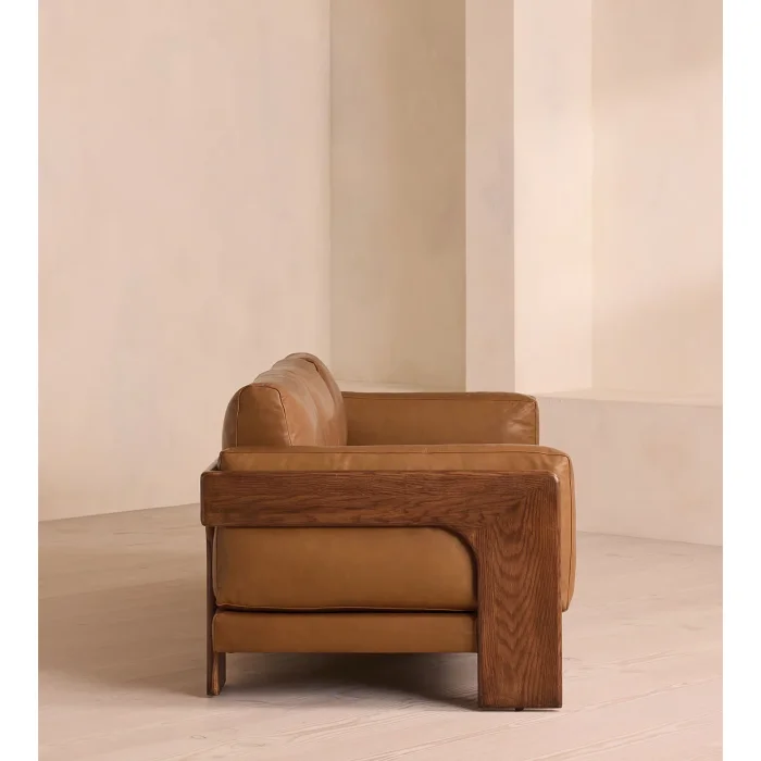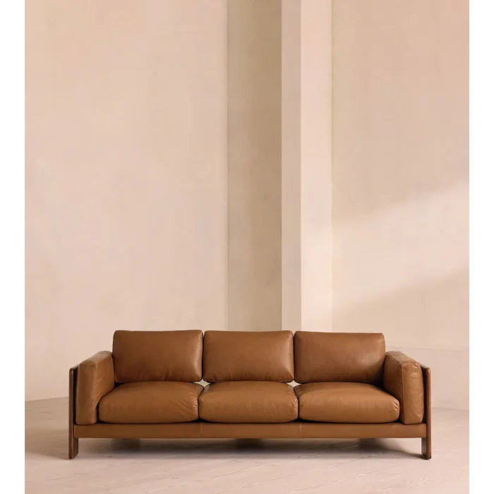 Product: Marcha Leather Upholstered Sofa With Wooden Details (3-4 Seater)
