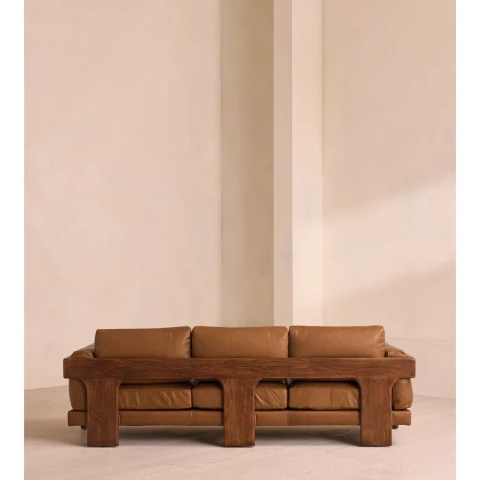 PRODUCT FEATURES • Upholstery: 100% genuine leather • Skeleton: Solid oak or solid walnut wood - Design: Relaxed silhouette, natural wood frame • Cushions: Down-coated, removable and double-sided • Feet: Solid oak or walnut • Use: Comfortable seating for 3–4 people • Production: Handcrafted by INNATURE craftsmen DIMENSIONS • Height: 78 cm • Width: 221 cm • Depth: 95 cm • Seat Height: 42 cm • Seat Depth: 59 cm • Seat Width: 178 cm • Arm Height: 62 cm • Weight: 80 kg PACKAGE DIMENSIONS • Height: 72 cm • Width: 231 cm • Depth: 105 cm • Package Weight: 80 kg WE CARE As INNATURE, we use solid wood, real leather and long-lasting materials in production. Marcha is a reflection of our sustainable production approach and high workmanship standards. SIMPLE, NATURAL, TIMELESS Marcha; attracting attention without shouting, He has an unpretentious but strong stance. It's not just a sofa — it's a balanced marriage of wood and leather.