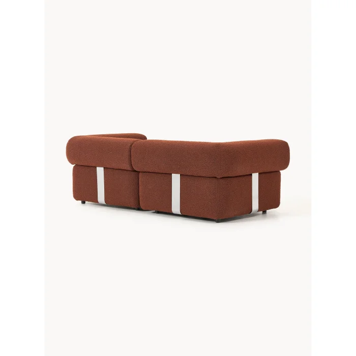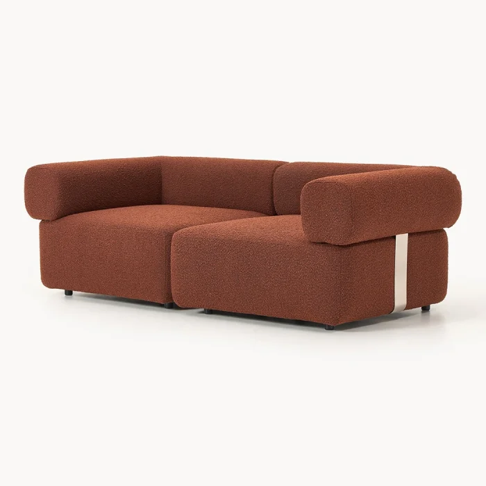 Properties Modular Structure: 2 different modules can be easily combined with the latch system or used separately. Flexible Use: The stool can be positioned to the right, left or independently. Sheath: Boucle fabric (80% polyester, 20% acrylic) Durability: 100,000 frictions in the Martindale test – suitable for heavy use. Filling: High density comfort foam (35 kg/m³) Frame: Beech wood, MDF, chipboard and durable cardboard backed construction Feet: Black plastic feet – lightweight, sturdy and ground-resistant. Colors: Off white, olive green, terracotta, turquoise green, gray blue, pink and dozens of color combinations Decor: Silver Feet: Black DELIVERY AND USE The product is delivered fully assembled, only the feet need to be attached. The fabric cover is not removable. All modules can be rearranged in different combinations. Made in Turkey. CARE ABOUT We care about protecting nature and sustainable production. As INNATURE, we produce with recyclable and environmentally friendly materials; We combine aesthetics with naturalness. Each piece is the product of long-lasting use and an environmentally friendly design approach.