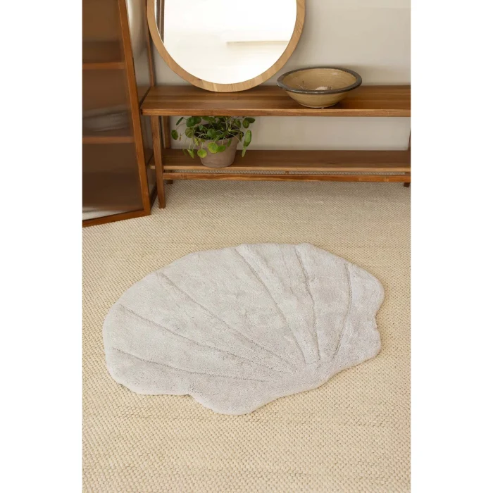 Handmade, Each Special for You: Each La Perla mat is carefully prepared by hand. Although produced by the same methods, each carries its own originality with slight differences; That's why every mop; offers a special touch that is yours alone.; Seashell-Inspired Design: La Perla mat adds a modern and aesthetic atmosphere to your bathroom with its shell form. This unique shape, inspired by nature, brings a sophisticated touch to your spaces and easily adapts to any decoration style. Natural Bamboo Fiber: Thanks to its structure made of bamboo yarns, it is both environmentally friendly and healthy; It offers a hygienic use with its natural feature; At the same time, its durable fibers provide long-lasting comfort; Natural Absorbency: Bamboo structure absorbs water quickly and dries in a short time; Thanks to its breathable texture, it prevents the accumulation of wetness and gives your bathroom a hygienic and spacious floor.; Softness with Every Step: The natural and silky texture of bamboo offers gentle contact with your feet with every step; It is ideal for those who want to leave the stress of the day behind or have a peaceful start to the day.