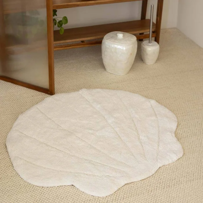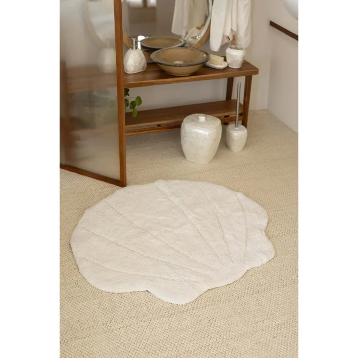 Handmade, Each Special for You: Each La Perla mat is carefully prepared by hand. Although produced by the same methods, each carries its own originality with slight differences; That's why every mop; offers a special touch that is yours alone.; Seashell-Inspired Design: La Perla mat adds a modern and aesthetic atmosphere to your bathroom with its shell form. This unique shape, inspired by nature, brings a sophisticated touch to your spaces and easily adapts to any decoration style. Natural Bamboo Fiber: Thanks to its structure made of bamboo yarns, it is both environmentally friendly and healthy; It offers a hygienic use with its natural feature; At the same time, its durable fibers provide long-lasting comfort; Natural Absorbency: Bamboo structure absorbs water quickly and dries in a short time; Thanks to its breathable texture, it prevents the accumulation of wetness and gives your bathroom a hygienic and spacious floor.; Softness with Every Step: The natural and silky texture of bamboo offers gentle contact with your feet with every step; It is ideal for those who want to leave the stress of the day behind or have a peaceful start to the day.