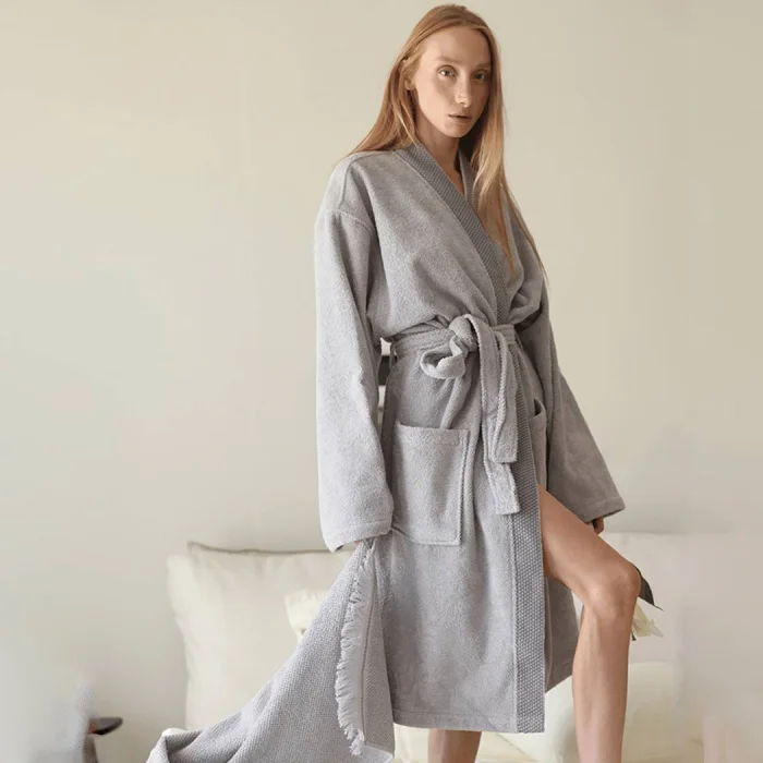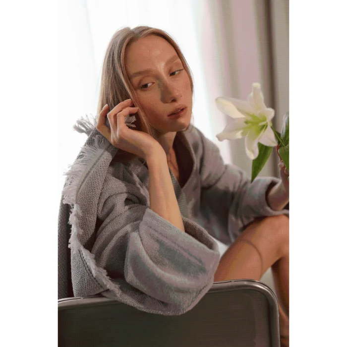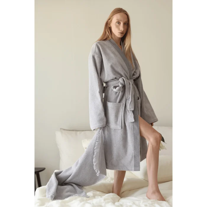 Product: Travertine 100% Cotton Women's Bathrobe Grey