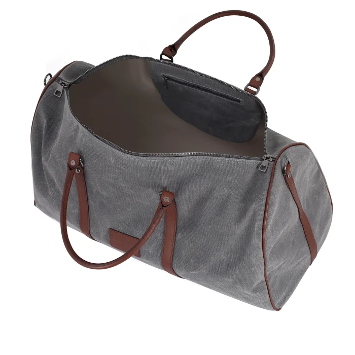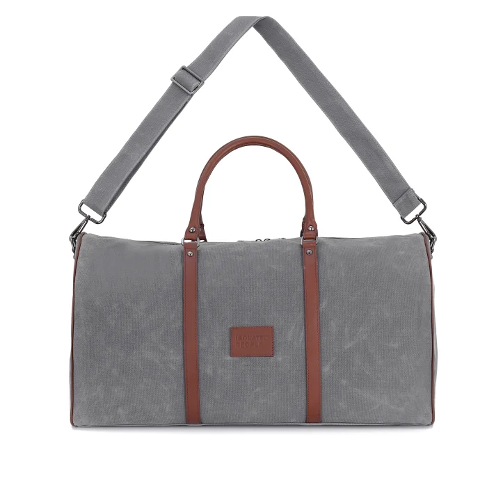 Textured beige inner lining Leather Isolated People logo detail Metal zipper and accessories Waterproof waxed canvas fabric Adjustable shoulder strap Genuine leather details Cabin-sized luggage Inner pocket detail for your small belongings Product dimensions: 27cm x 55cm x 30cm