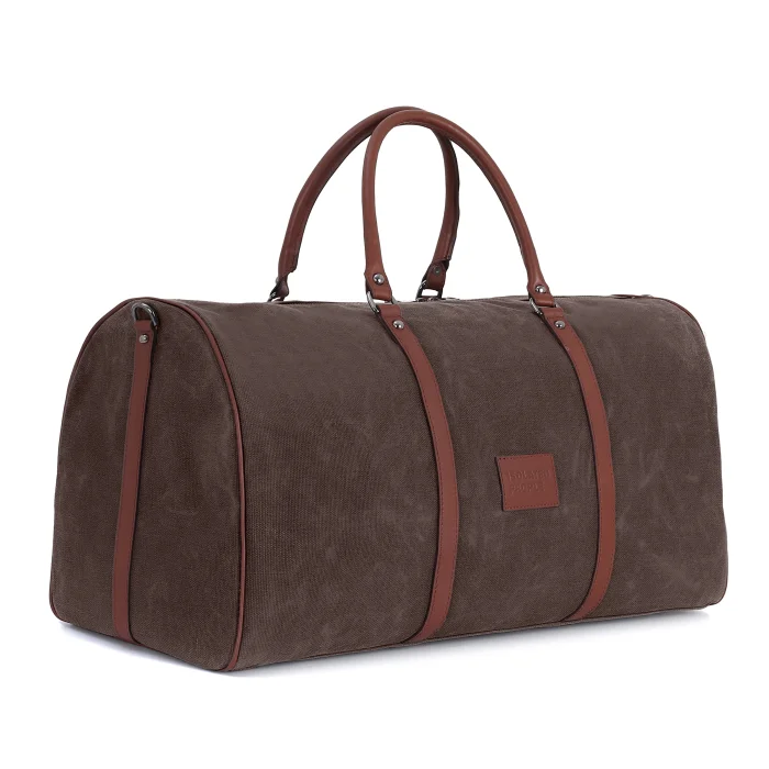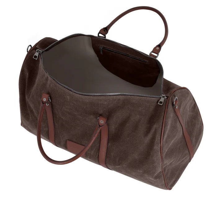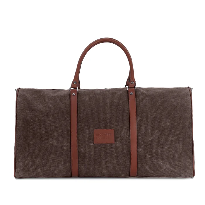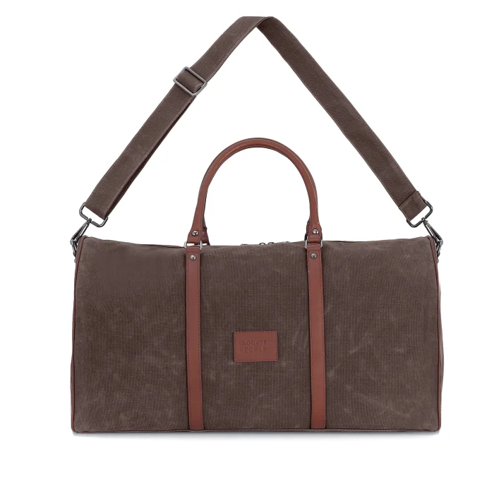 Textured beige inner lining Leather Isolated People logo detail Metal zipper and accessories Waterproof waxed canvas fabric Adjustable shoulder strap Genuine leather details Cabin-sized luggage Inner pocket detail for your small belongings Product dimensions: 27cm x 55cm x 30cm