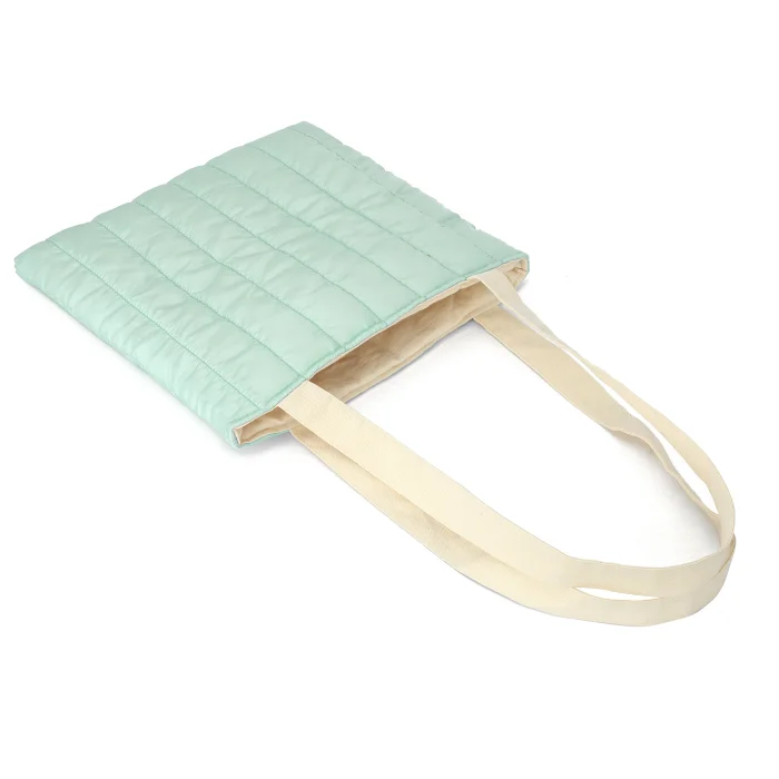 Quilted, fiber-filled polyester fabric Natural-colored, thick canvas inner lining and straps Reversible design Inner pocket detail Isolated People fabric label Bag dimensions: 35 cm x 33 cm