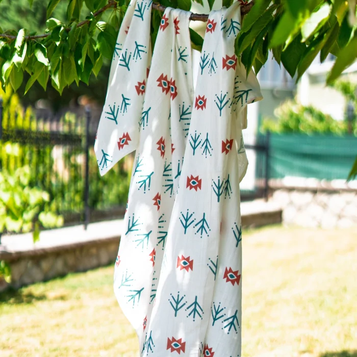 With its soft texture, fairy-tale patterns and multi-purpose use, Big Flower Amulet Muslin Cover adds both joy and comfort to your children's lives. Made of 100% cotton double-layer muslin, this cover is a soft cover during sleep moments, a cushion during playtime, and a cooling helper outside.
