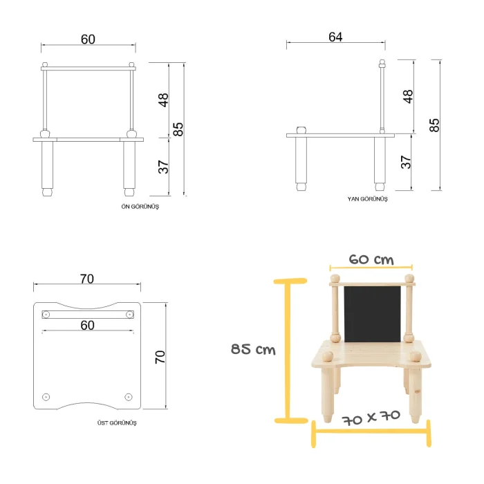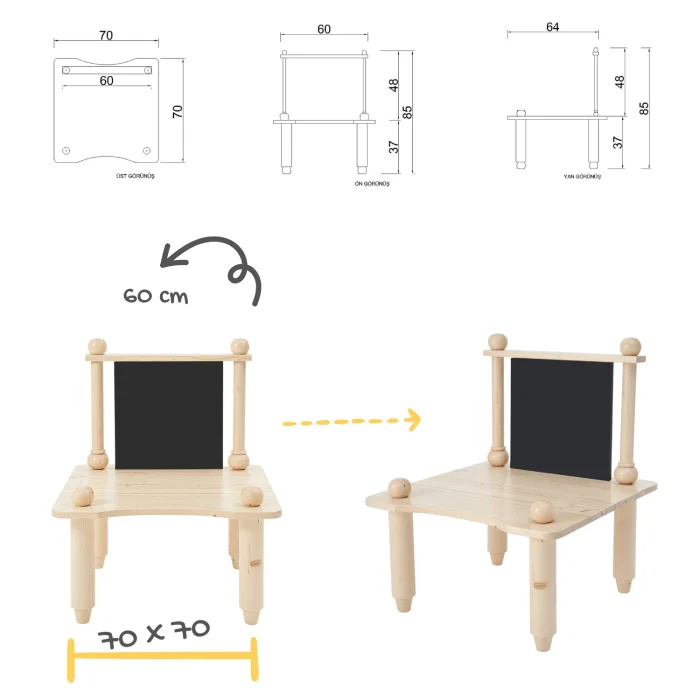 This table is an ideal choice to develop your child's creativity by supporting both entertainment and education. It also complements the aesthetics of your room with its stylish and natural design.