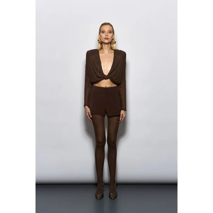 Product: Asymmetric Brown Mini Shorts