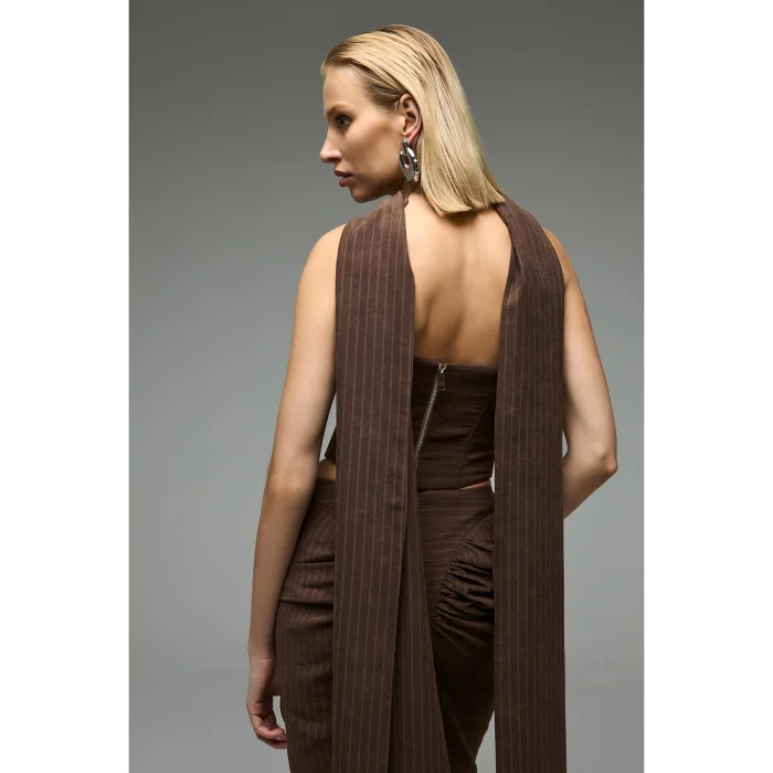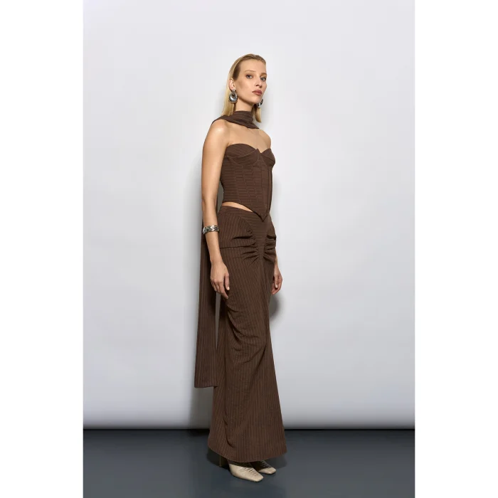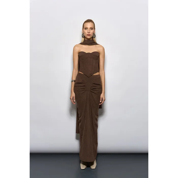 STRIPED STRAPLESS CORSET, ASYMMETRIC TIP DESIGN BLOUSE