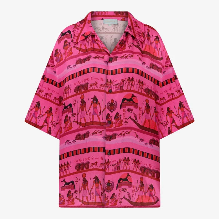 Egyptian-print short sleeve pink unisex shirt