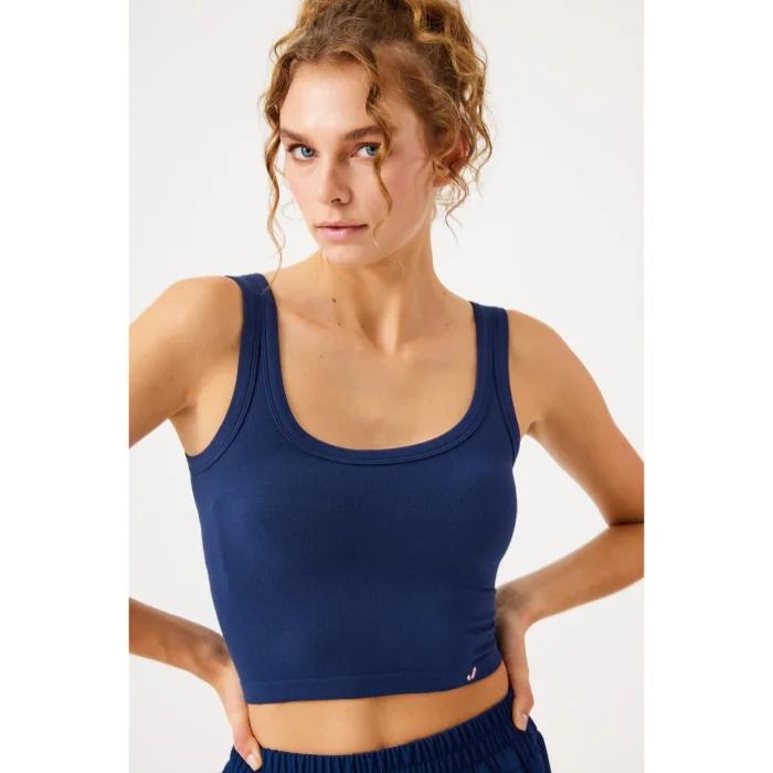 Offering simple elegance and comfort together, this short tank top will be indispensable for both daily wear and sports combinations!