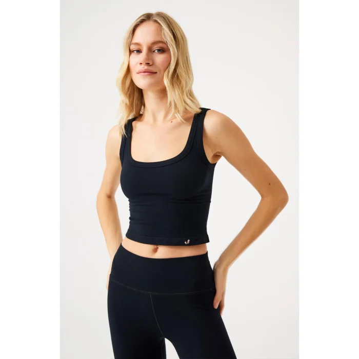 Offering simple elegance and comfort together, this short tank top will be indispensable for both daily wear and sports combinations!