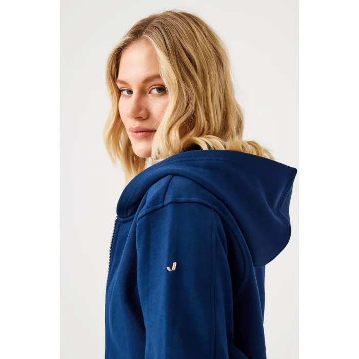 Aura Zippered Crop Hoodie, which combines elegance and comfort, adds a dynamic atmosphere to your style with its modern cut. The crop design, which ends at waist level, stands out with its feminine stance, while its simple form offers a minimal and flowing look. The hooded structure and front zipper detail create a sporty and stylish style while providing ease of use. The slightly fuzzy texture of the interior offers a soft feel all day long.