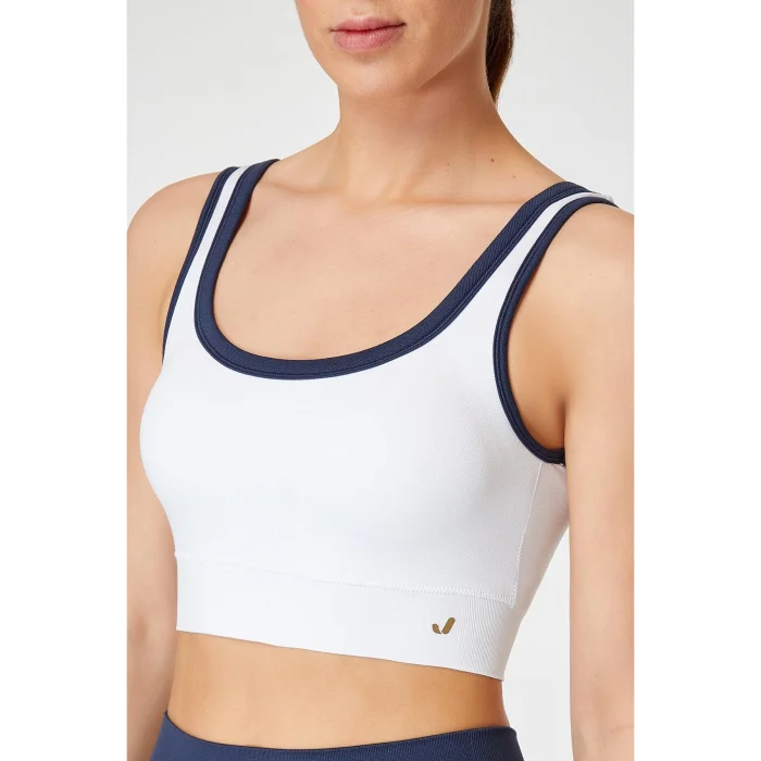 It is a high-support sports bra with thick double color welt shoulder straps. For extra protection, it is double-layered and contains a container.