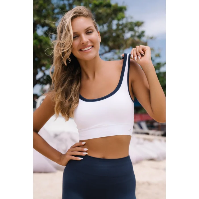 It is a high-support sports bra with thick double color welt shoulder straps. For extra protection, it is double-layered and contains a container.