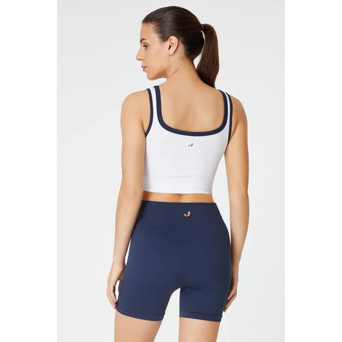 It is a high-support sports bra with thick double color welt shoulder straps. For extra protection, it is double-layered and contains a container.