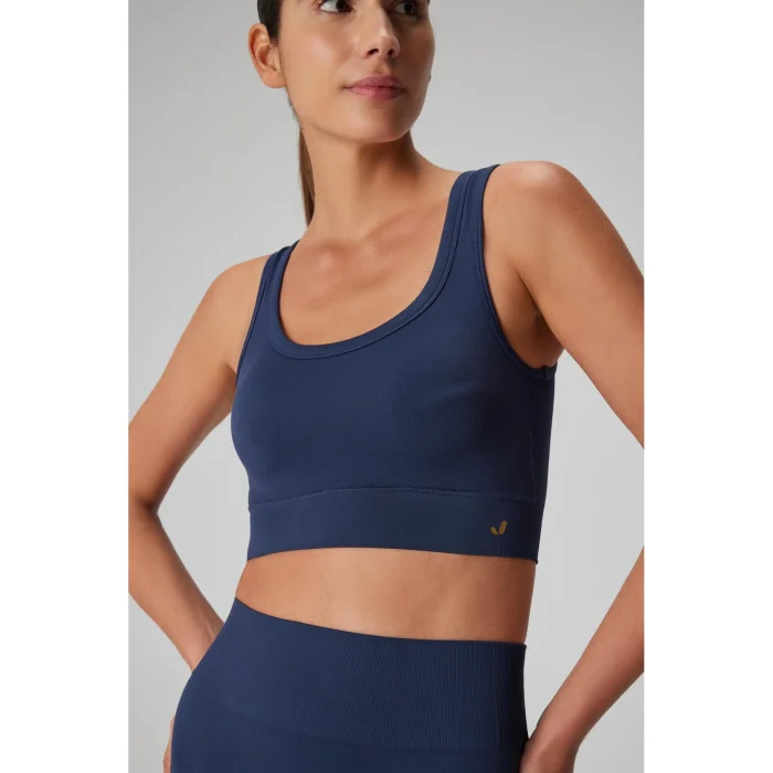 It is a high-support sports bra with thick double color welt shoulder straps. For extra protection, it is double-layered and contains a container.