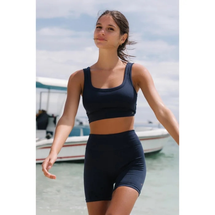 It is a high-support sports bra with thick double color welt shoulder straps. For extra protection, it is double-layered and contains a container.