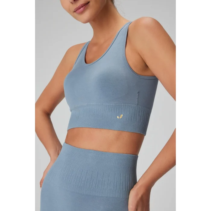It is a supportive sports bra that provides high grip with wide shoulder straps and rip details on the belt. For extra protection, it is double-layered and contains a container. It has a tight fabric structure to provide safe movement in your sports.