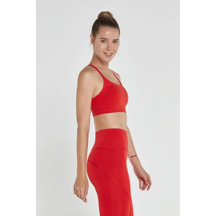 The Pine Bra is a soft-textured, light-backed bralette style with a round neckline and adjustable spaghetti strap at the back. There are removable pads inside the bra.