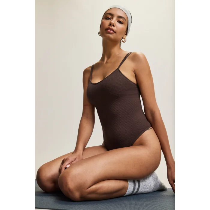 This Bamboo Cross-Back Bodysuit combines style with comfort, making it an essential piece for both activewear and everyday layering. Crafted from a textured bamboo blend, the fabric feels incredibly soft against the skin while offering natural breathability and moisture-wicking properties, ensuring all-day comfort. Bamboo is also known for its gentle touch and durability, making it a perfect choice for a bodysuit that moves with you throughout your day. The elegant cross-back detailing adds a stylish touch, offering a flattering fit and extra support. Whether worn on its own for yoga or layered under your favorite athleisure pieces, this bodysuit provides versatility with a sleek, streamlined silhouette. Ideal for low-impact activities or casual outings.