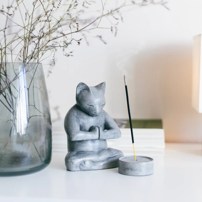 Product: Concrete Meditation Cat Figurine And Incense Holder