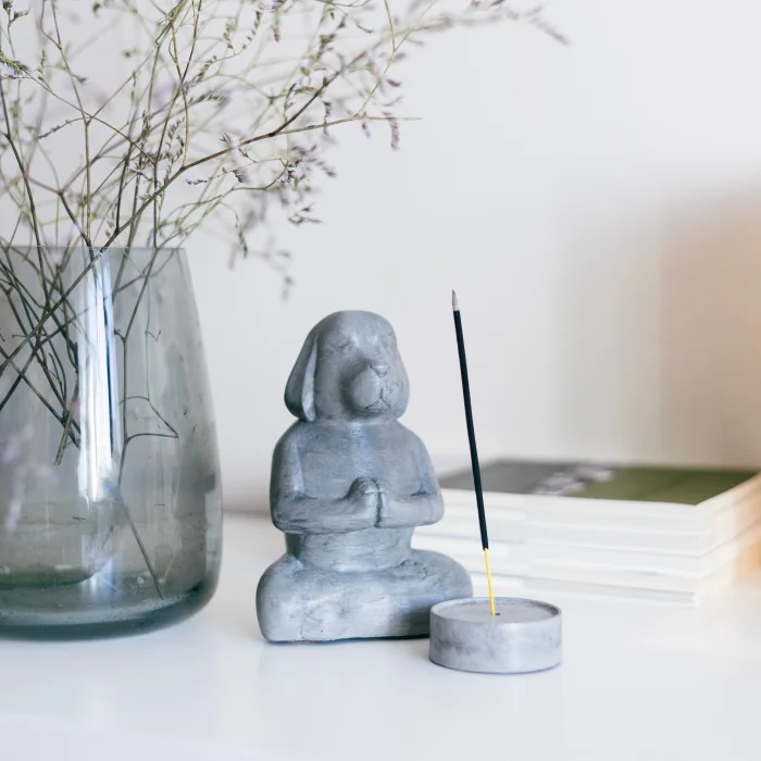 Product: Concrete Meditation Cat Figurine And Incense Holder