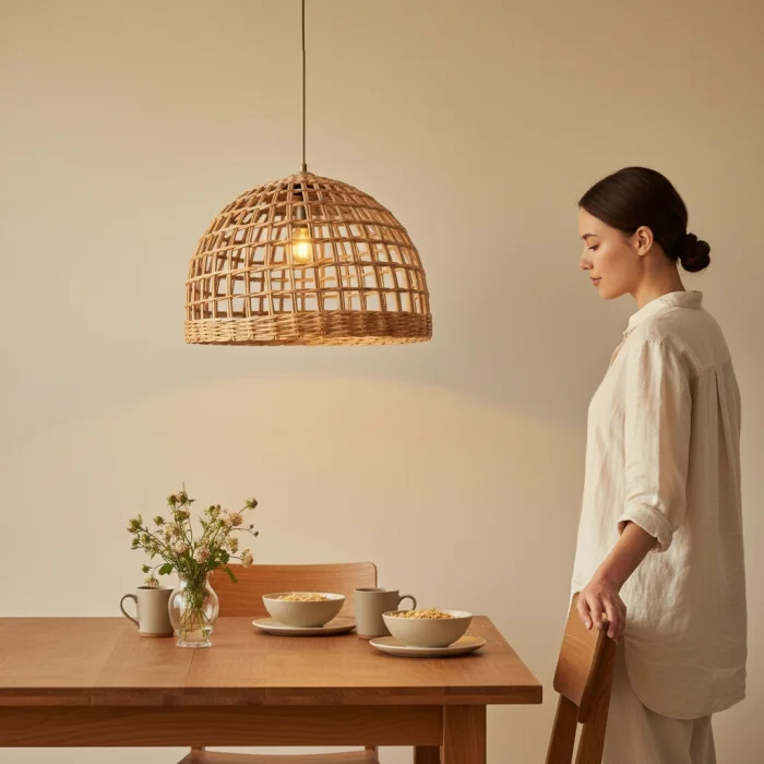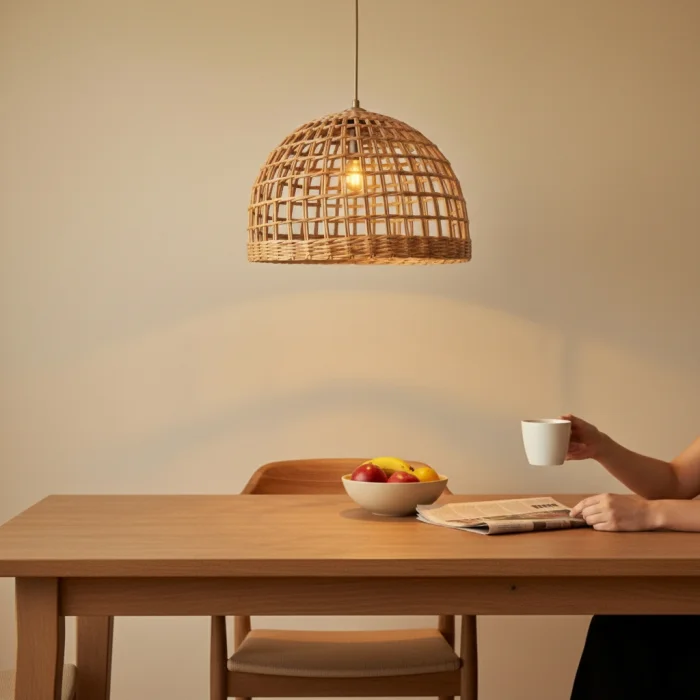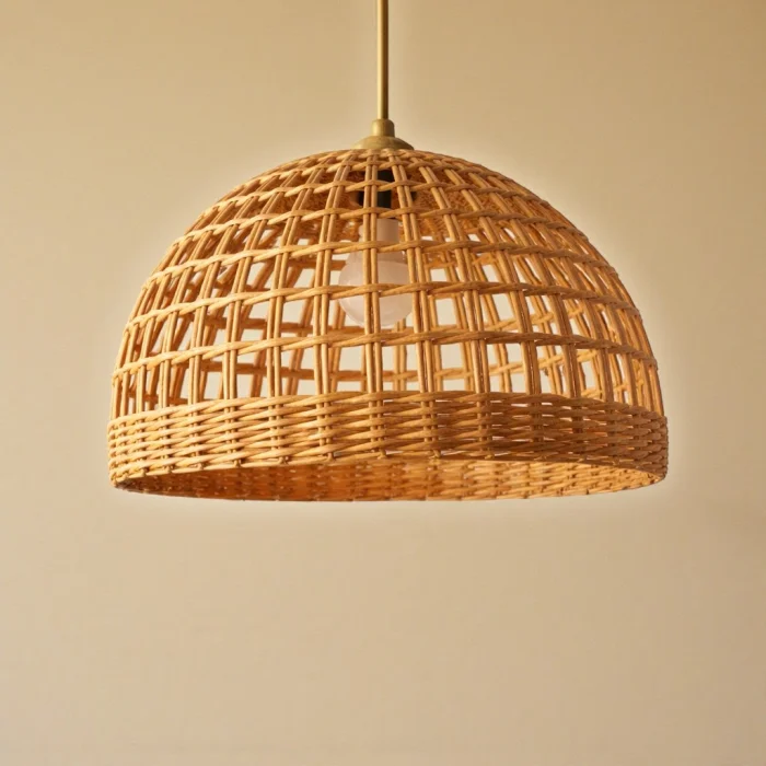 Product: Handmade Rustic Rattan Pendant Light | Natural Dyed Woven Lamp | Scandinavian Boho Ceiling Lighting | Vernished Rattan Shade