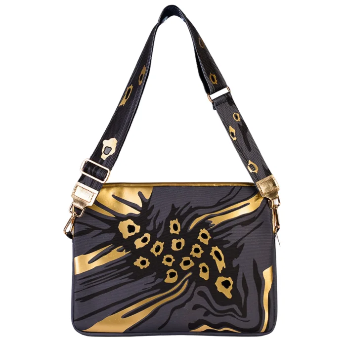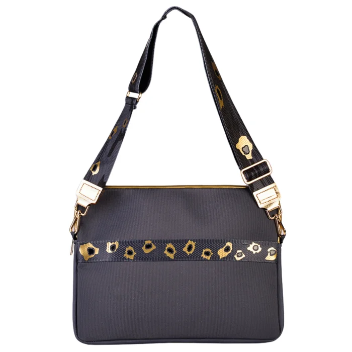 It is suitable for use on the shoulder, by hand, or attached to a suitcase.