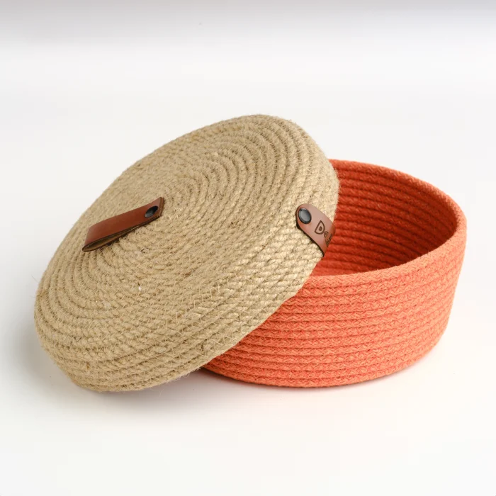 Product: Multi-purpose Cotton Rope Basket With Jute Lid