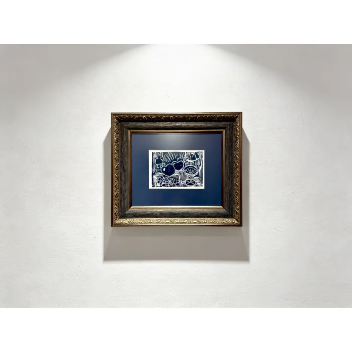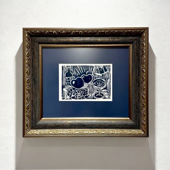• Produced using the linocut (linoleum print) technique