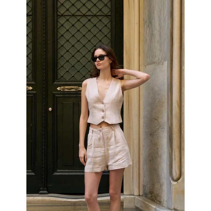100% Linen Beige Vest – A favorite of the summer months with its natural texture and breathable structure. It offers a lightweight, stylish and timeless style.