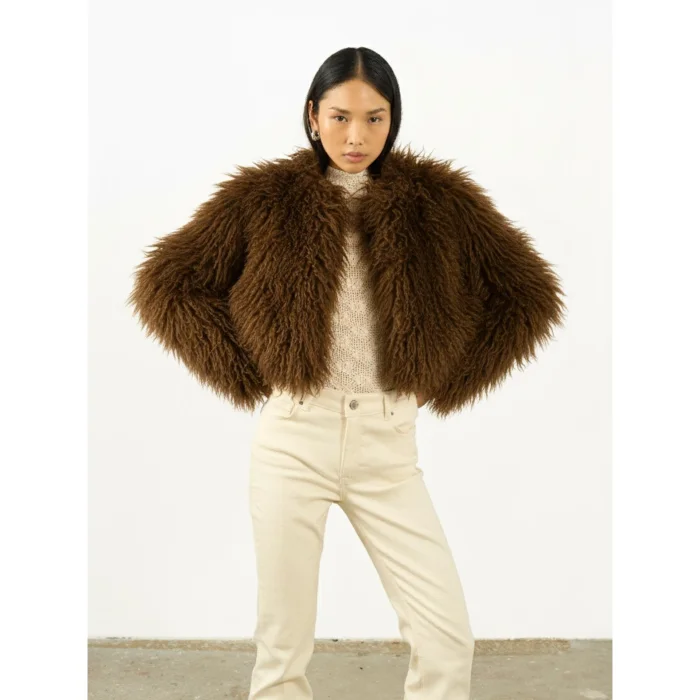 Standing out with its soft texture, this brown fur crop jacket offers warmth and luxury together. With its modern cut, it adds a touch of sophistication to any look.