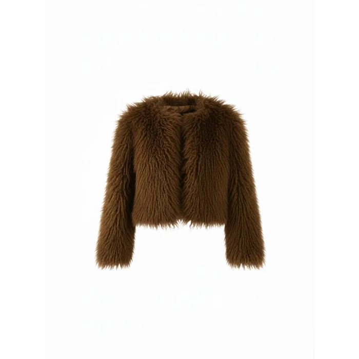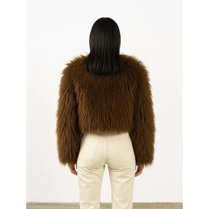 Standing out with its soft texture, this brown fur crop jacket offers warmth and luxury together. With its modern cut, it adds a touch of sophistication to any look.