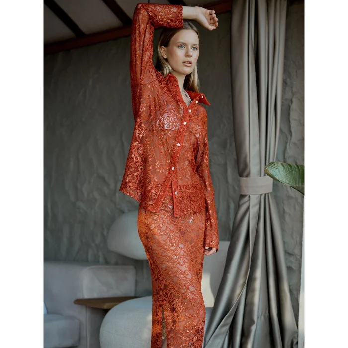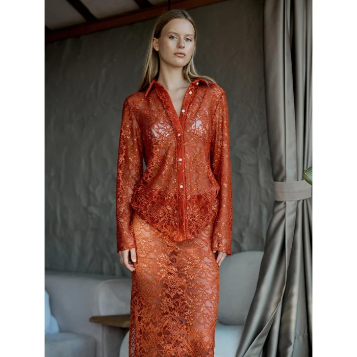 Foiled Lace Design Buttoned Shirt Collar Oversize Mold Unlined Long SleeveProduct: Gilded Lace ShirtDesigner: JusteProduct Code: 2023-606_00200238This product will be sent by Juste on behalf of hipicon