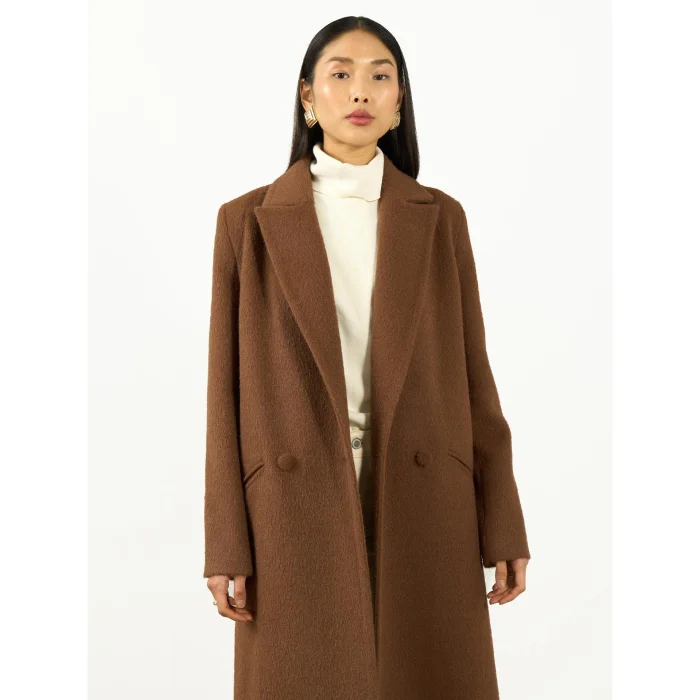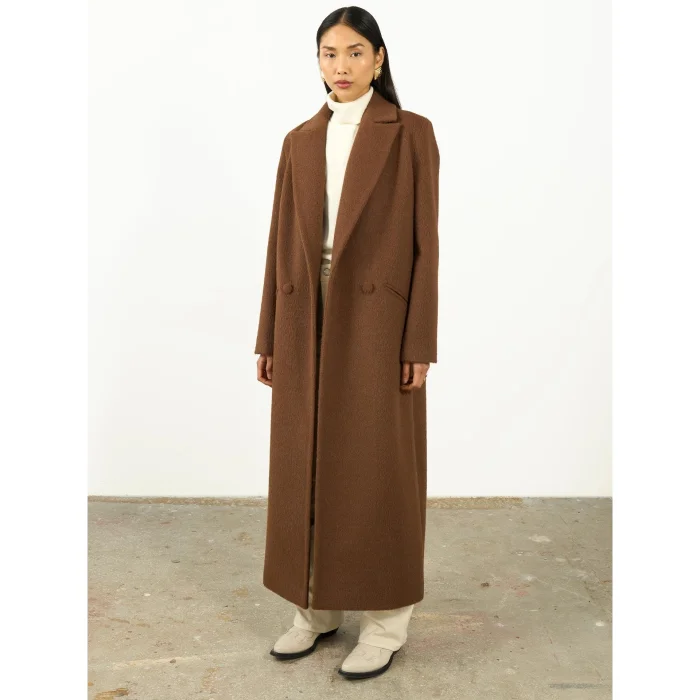 Oversize Wool Double Breasted Coat It offers a timeless and stylish style with its brown color. Its wide cut provides a comfortable and modern stance, while large button details add movement to the design.