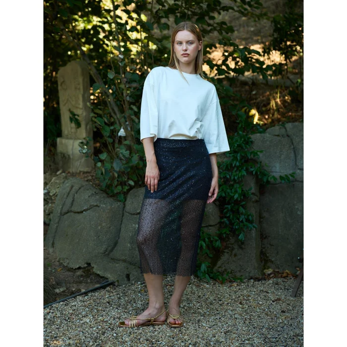 Sequined Lace Midi Half Lined Zipper Closure Product: Sequined Midi SkirtDesigner: JusteProduct Code: 2024-829_181840This product will be sent by Juste on behalf of hipicon